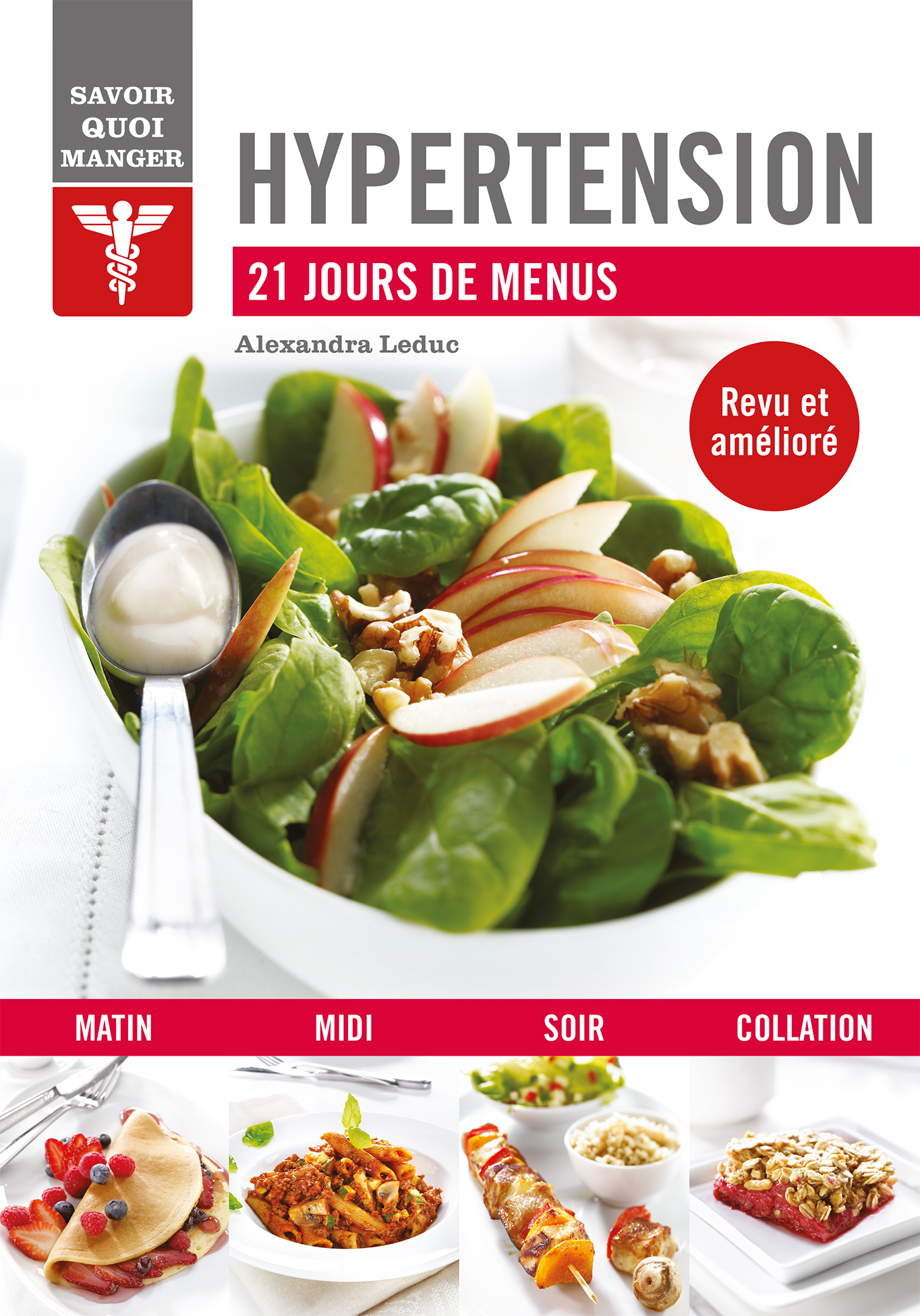 • planifier et diversifier vos repas et collations grâce à des menus quotidiens spécialement conçus pour prévenir et traiter l’hypertension.