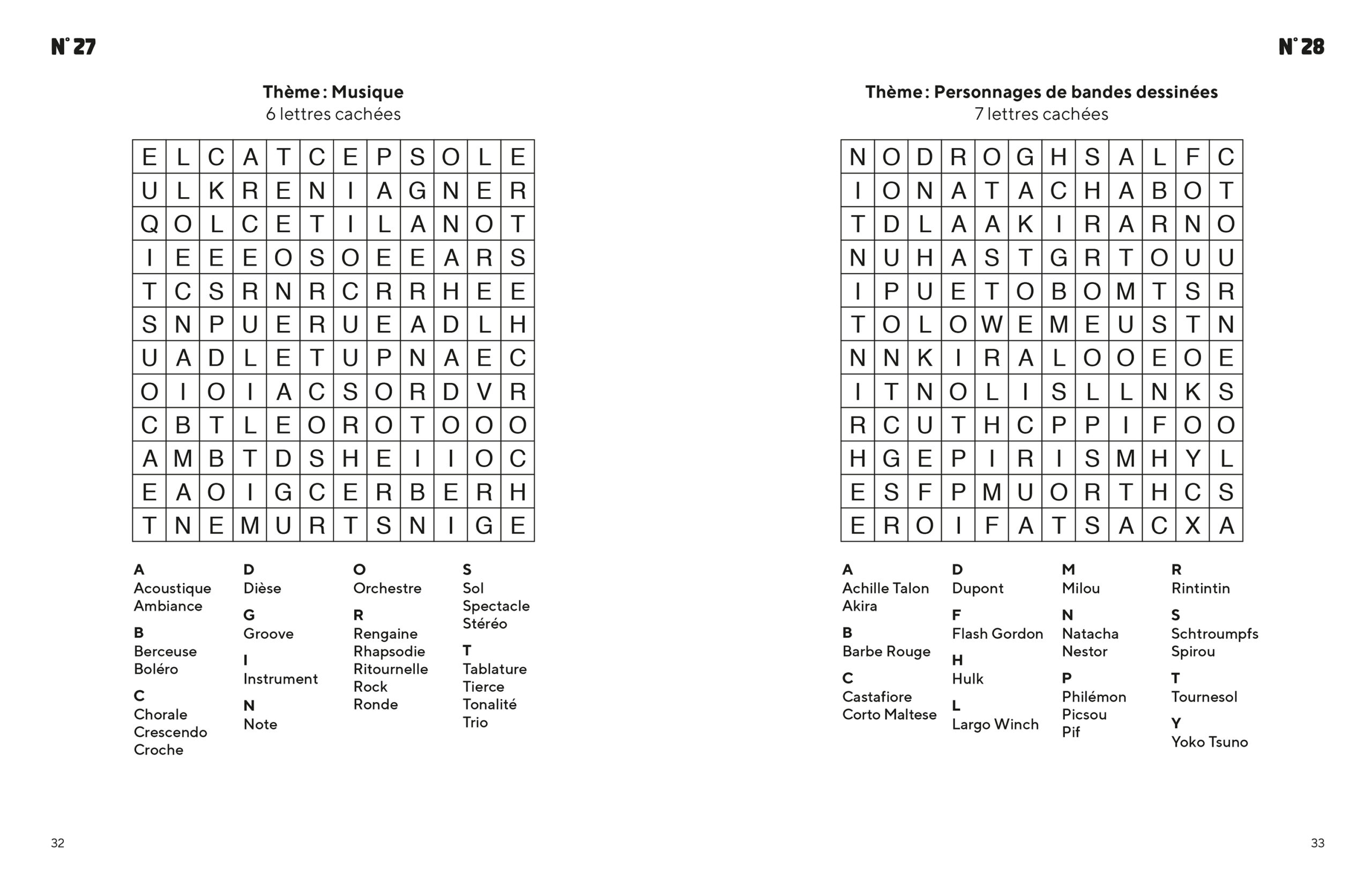 Mots cachés, détente assurée! À l'horizontale, à la verticale, en diagonale, à l'endroit ou à l'envers, on s'amuse à encercler les mots dans tous les sens.