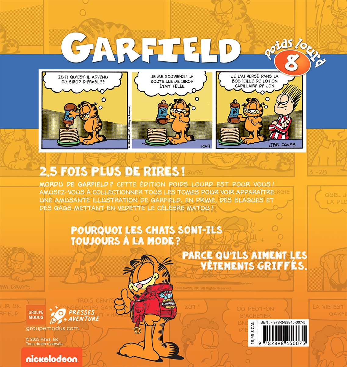 Mordu de Garfield? Cette édition Poids lourd est pour vous! Amusez-vous à collectionner tous les tomes pour voir apparaître une amusante illustration de Garfield. En prime, des blagues et des gags mettant en vedette le célèbre matou!